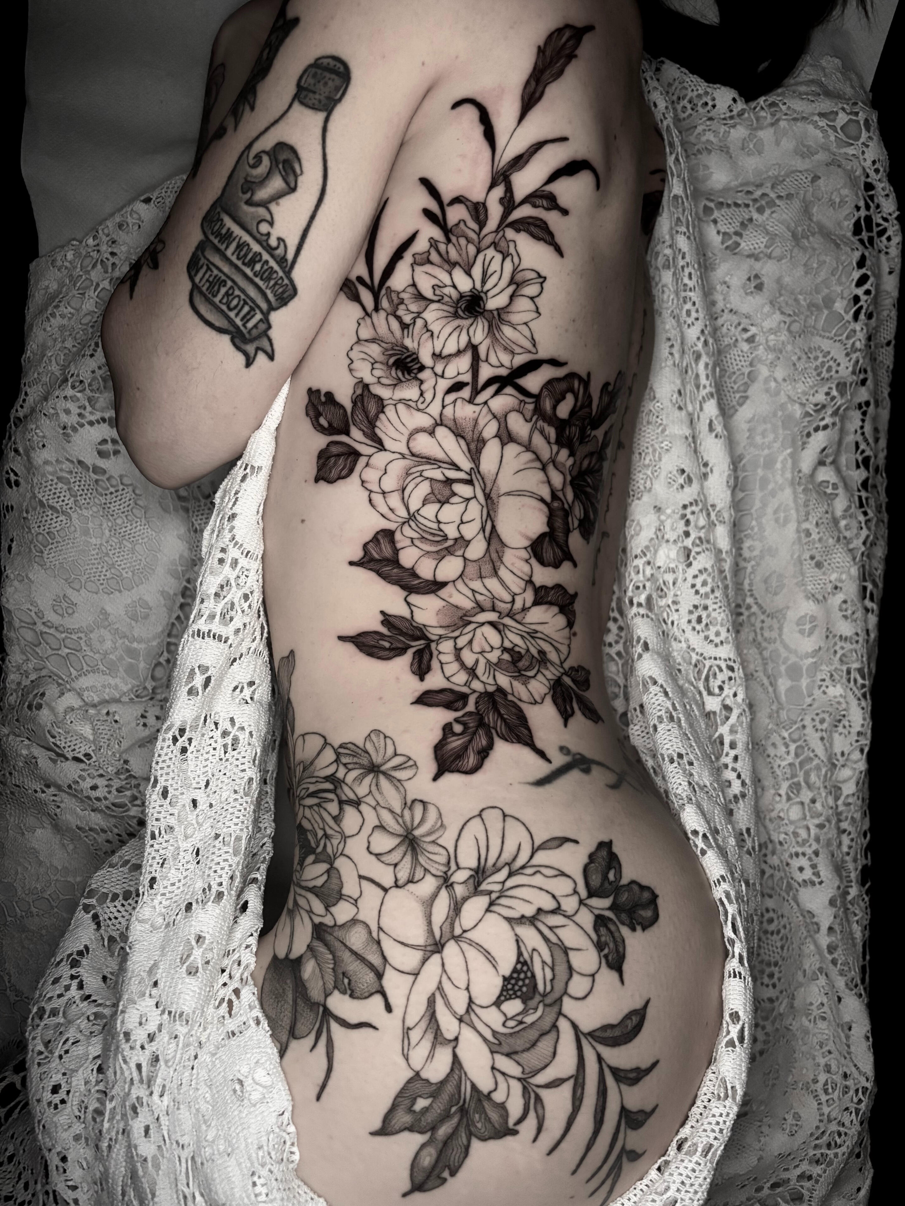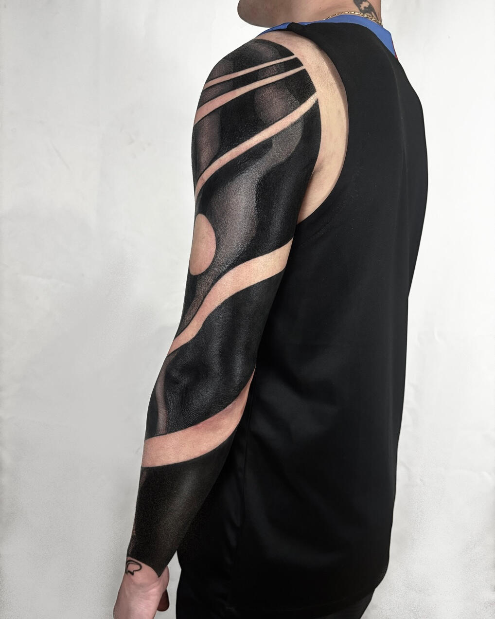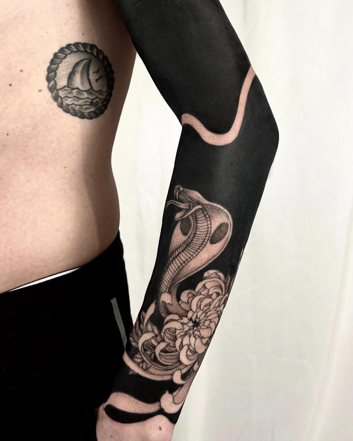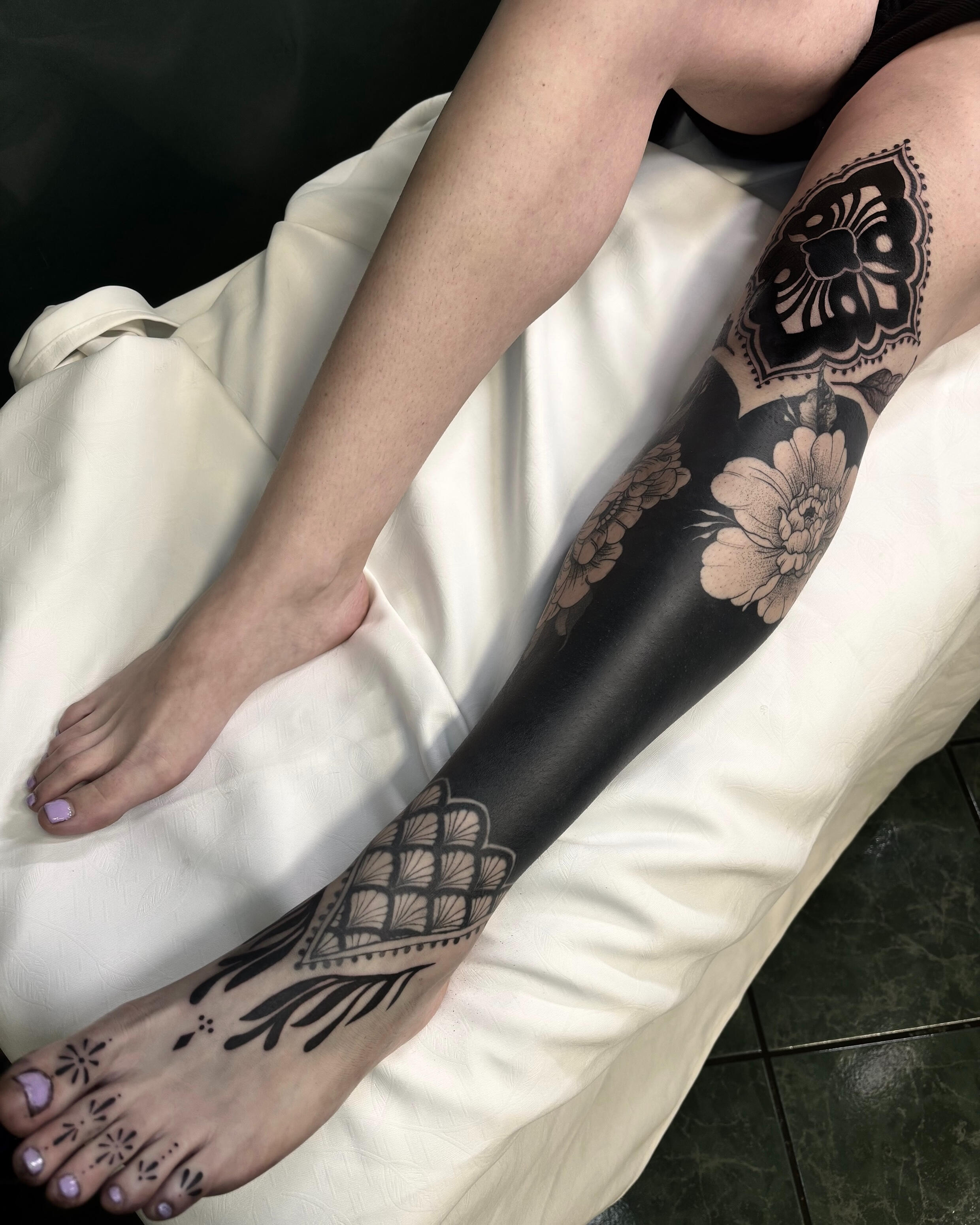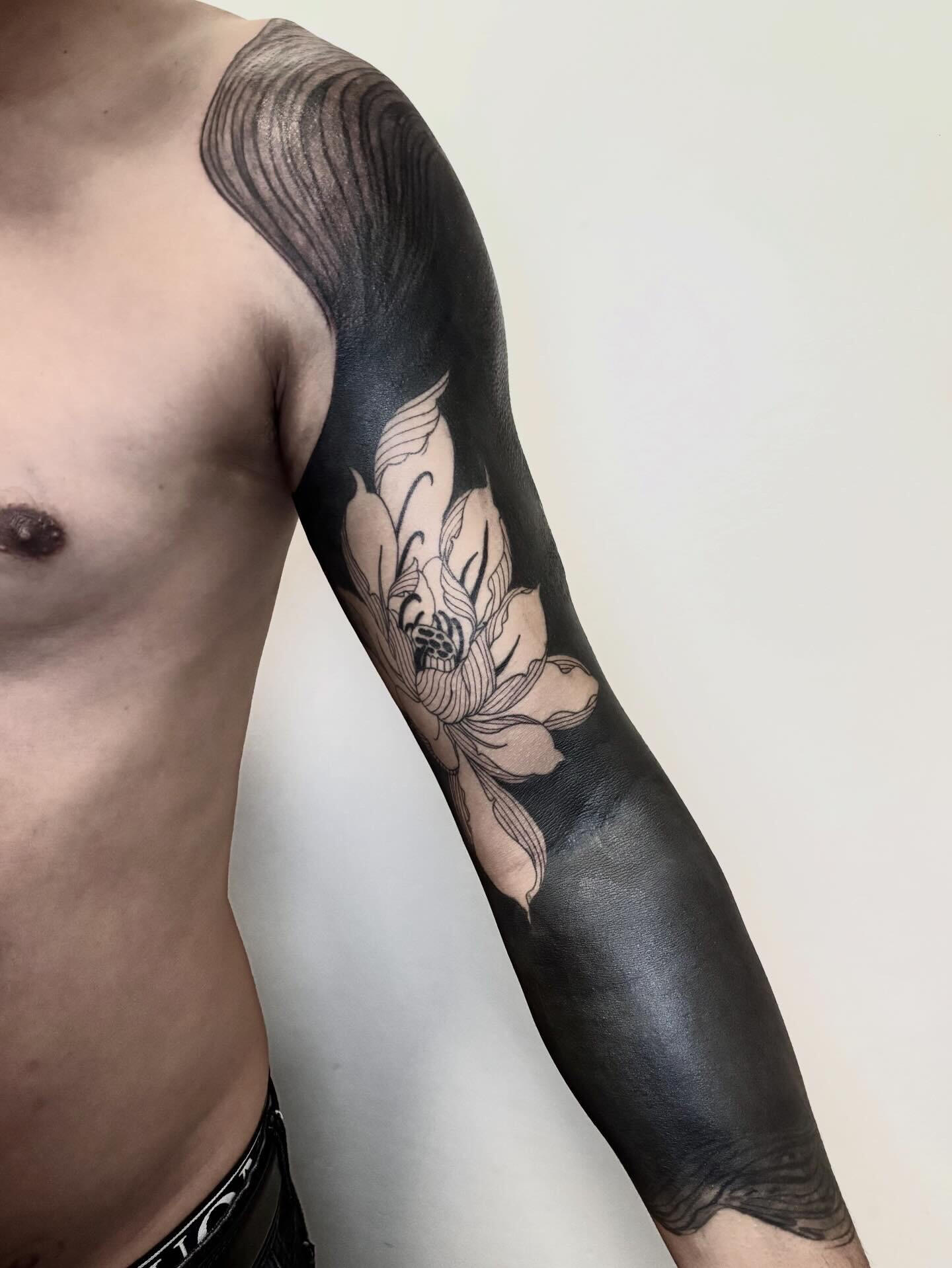 Sono specializzata in tatuaggi blackout professionali, inclusi full arm, full leg e coperture blackout per uniformare vecchi tatuaggi o correggere aree compromesse.Questo tipo di lavoro richiede una gestione avanzata della saturazione, della distribuzione dell’inchiostro e dei tempi di guarigione.Pianifico ogni intervento in modo progressivo, valutando la risposta della pelle, la densità del riempimento e la resa finale, per ottenere un risultato compatto, uniforme e stabile nel tempo.